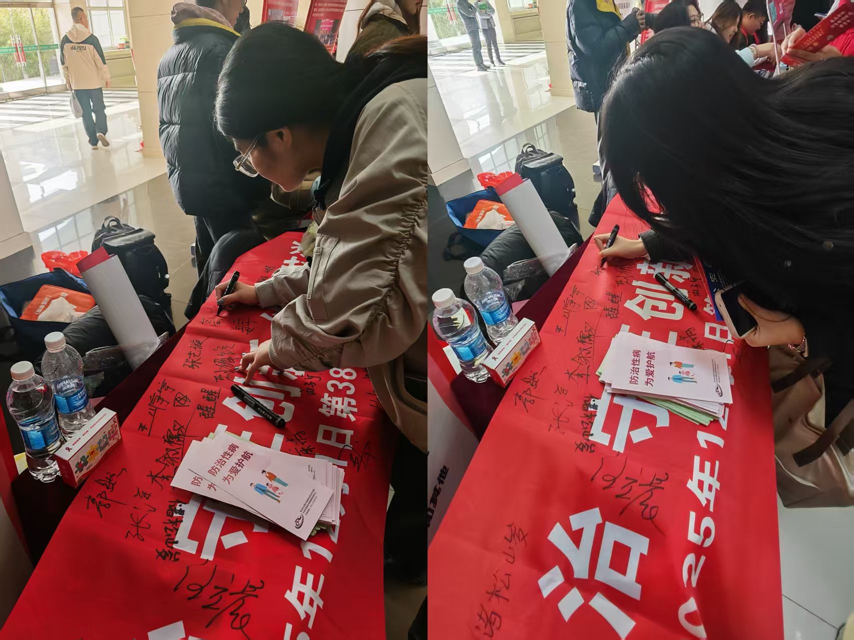 活动现场,社团成员通过设置宣传点、发放宣传折页等形式,向师生们普及艾滋病防治知识,引导师生树立正确的防护观念。折页上详细介绍了艾滋病的传播途径、预防方法以及对艾滋病患者的包容与理解等内容,让师生们对艾滋病有了更直观的认识。同学们在横幅上郑重签下自己的名字,以积极行动支持并参与我校艾滋病防治工作。